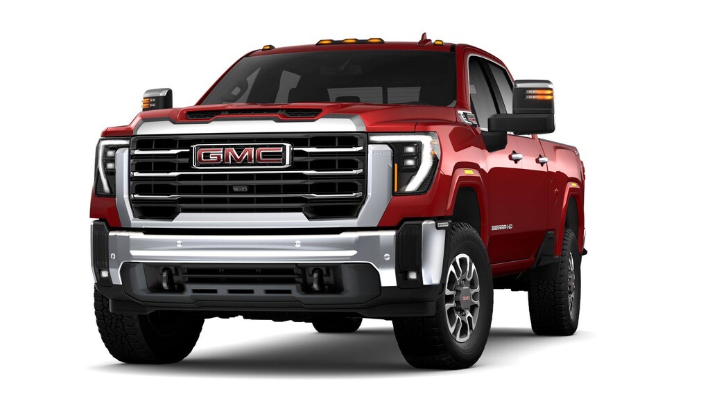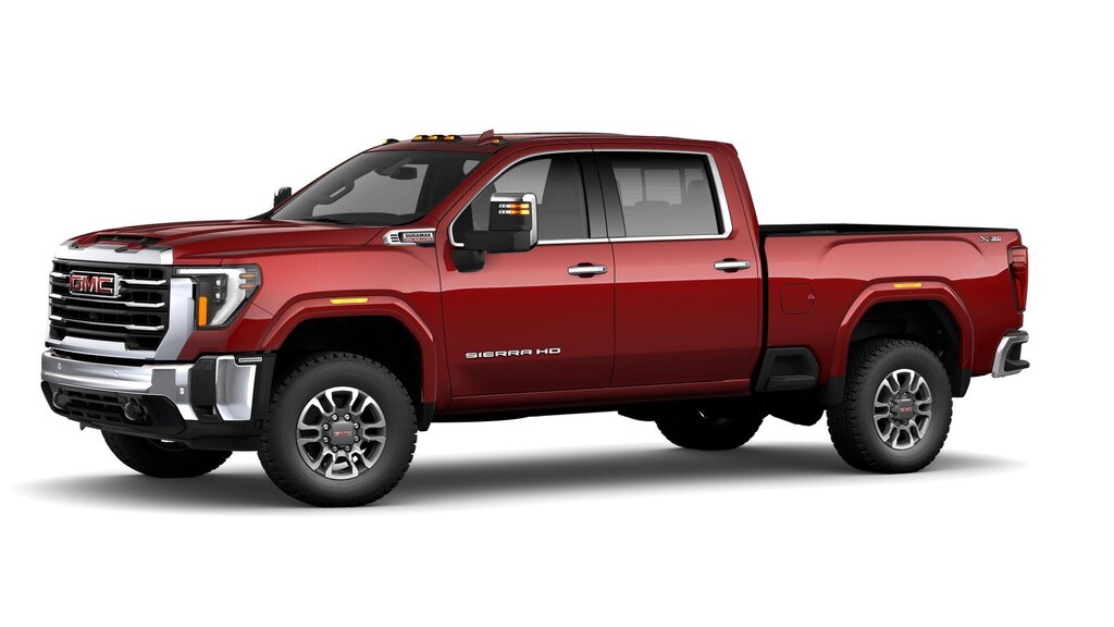 Volcanic Red Tintcoat 2025 GMC Sierra 2500HD SLT 4WD 10-Speed Automatic Duramax 6.6L V8 Turbodiesel 5th Wheel, Android Auto, Backup Camera, Apple CarPlay, Blindspot Monitoring, Bluetooth, Bose High End Sound Package, Dual Climate Package, Must See, Heated Seats, Cooled Seats, Memory Seat Package, Leather Seats, Multi Zone Climate Control, Front Parking Sensors, Rear Park Assist, Premium Sound Package, Rear Climate Package, Remote Start, Tow Package, Heated Steering Wheel, Four Complimentary Oil Change and Tire Rotation, Complimentary 12 Month Collision Deductible Waiver (up to $500), 2nd Row Heated Seats, HD Surround Vision Camera, Fixed Running Boards, Spray In Bed Liner, Max Trailering Package, LED Headlamps, Front Park Assist, Wireless Charging, Sierra 2500HD SLT, 4D Crew Cab, Duramax 6.6L V8 Turbodiesel, 10-Speed Automatic, 4WD, Volcanic Red Tintcoat, Dark Walnut/Slate Leather.