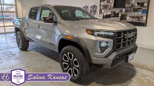 Sterling Metallic 2026 GMC Canyon AT4 4WD 8-Speed Automatic 2.7L I4 Turbocharged DOHC 16V LEV3-SULEV30 310hp Four Complimentary Oil Change and Tire Rotation, Complimentary 12 Month Collision Deductible Waiver (up to $500), Canyon AT4, 4D Crew Cab, 2.7L I4 Turbocharged DOHC 16V LEV3-SULEV30 310hp, 8-Speed Automatic, 4WD, Sterling Metallic, Jet Black/Timber Cloth, 120-Volt Bed Mounted Power Outlet, 2 Rear USB Ports in Center Console (Charge-Only), 8-Way Power Driver Seat Adjuster, Automatic Emergency Braking, Black Badges, Black GMC Emblems, Blind Zone Steering Assist with Trailering, Canyon Pro Safety, Canyon Safety Plus Package, Driver and Front Passenger Illuminated Visors, Dual-Zone Automatic Climate Control Air Conditioning, EZ-Lift and Lower Tailgate, Following Distance Indicator, Forward Collision Alert, Front LED Fog Lamps, Front Pedestrian and Bicyclist Braking, Heated Driver and Front Passenger Seats, Inside Rear-View Auto-Dimming Mirror, IntelliBeam Automatic High Beam on/Off, Interior Overhead Courtesy Light with Dual Reading Lamp, Lane Keep Assist with Lane Departure Warning, MultiStow Tailgate Storage Compartment, Nightfall Essentials Package, Power Driver Lumbar Control Seat Adjuster, Preferred Equipment Group 4SG, Rear Cross Traffic Braking, Rear of Console 120-Volt Power Outlet, Remote Vehicle Starter System, Tailgate Keyed Cylinder Lock, Til and Telescopic Manual Steering Column, Ultrasonic Rear Park Assist, Wheels: 20" x 9" Machined Faced Aluminum.
