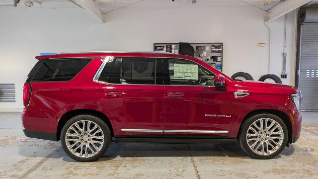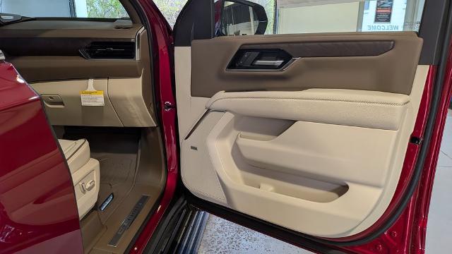 Volcanic Red Tintcoat 2026 GMC Yukon Denali 4WD 10-Speed Automatic with Overdrive EcoTec3 6.2L V8 3rd Row Seating, Must See, Four Complimentary Oil Change and Tire Rotation, Complimentary 12 Month Collision Deductible Waiver (up to $500), Yukon Denali, 4D Sport Utility, EcoTec3 6.2L V8, 10-Speed Automatic with Overdrive, 4WD, Volcanic Red Tintcoat, Teak/Light Shale Leather, 15" Diagonal Multi-Color Head-Up Display, 3 Years OnStar One, 3rd Row All-Weather Floor Liners, 4-Way Power Driver Lumbar Seat Adjuster, Advanced Security Package, Advanced Technology Package, Air Ride Adaptive Suspension, All-Weather Cargo Mat, Apple CarPlay/Android Auto, Audio memory, AutoSense Hands-Free Power Liftgate, Blind Zone Steering Assist with Trailering, Bose 10-Speaker Surround with CenterPoint, Denali Reserve Package, Driver Attention Assist, Dual Exhaust System, Dual-Pane Panoramic Power Sunroof, Enhanced Trailering Technology Package, Extra Capacity Cooling System, First and Second Rows Premium Floor Liners, Floor Liner Package, Garage door transmitter, Glass Breakage Sensor, Heated Driver and Front Passenger Seats, Heated steering wheel, Hill Descent Control, Hitch View, Illuminated entry, Inside Rearview Auo-Dimming Rear Camera Mirror, Integrated Trailer Brake Controller, Max Trailering Package, Memory seat, Navigation system: GMC Connected Navigation, Perforated Heated and Ventilated Driver and Front Passenger Seats, Power Liftgate, Power-Retractable Assist Steps, Radio: 16.8" Diagonal Premium GMC Infotainment System, Rain sensing wipers, Rear Seat Media System, SiriusXM with 360L, Smart Trailer Integration Indicator, Super Cruise, Theft-Deterrent Alarm System, Trailer Camera Provisions, Trailering Assist Guidelines, Vehicle Inclination Sensor, Vehicle Interior Movement Sensor, Ventilated front seats, Wheel Locks (set of 4), Wheels: 24" x 9.5" Selective Machined and Painted, Wired Auxiliary Trailer Camera.